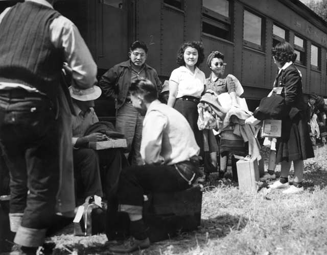 So Japanese-Americans were forced from their homes and businesses into relocation centers all across the interior American west. Even though many of them were American-born citizens. Even though many of them would fight for the United States in World War II.